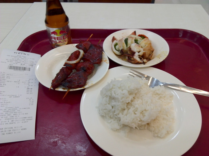 3月5日的飞机从宿务回吉隆坡,天呐,我竟然用“回”,看来真把自己当马来西亚人啦,这是走之前在麦德龙吃的午餐,也算是这次在宿务的最后一顿吧,记得,是这次喔,我胡汉三还是要回来的~~,吃饱喝足就打车去机场,出 租车 都不肯打标,第一家要400P,第二家要350P,中午大太阳,我实在没有精神一家家去问了,350P就从了吧。