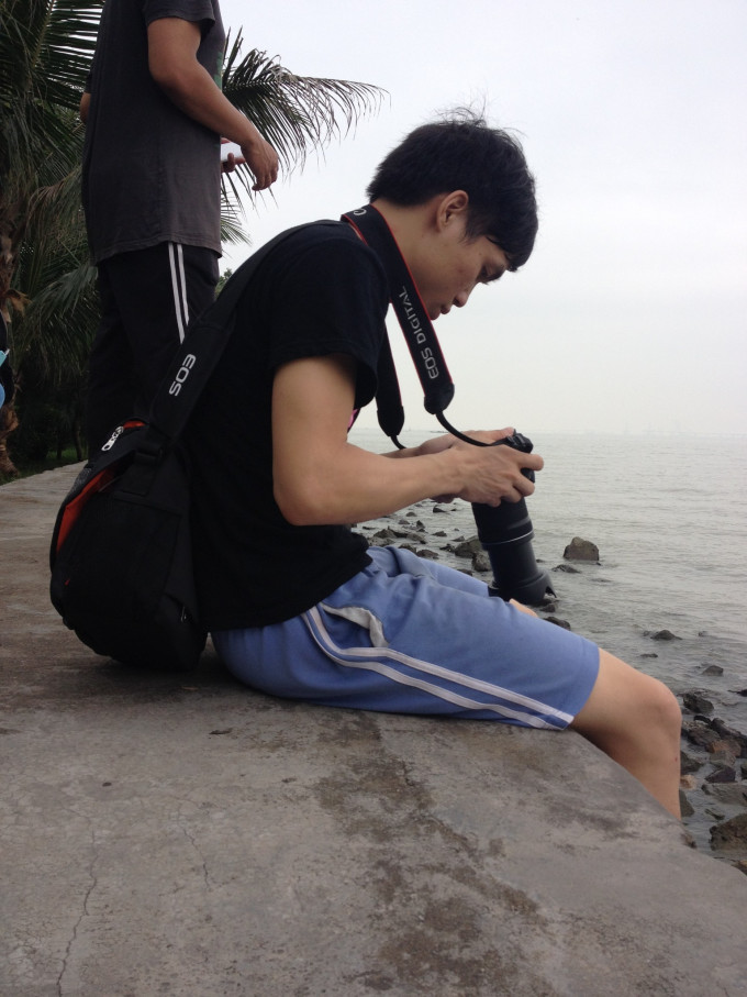 看,我们可爱的专业摄影师了。