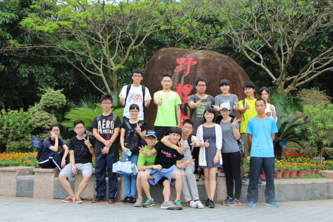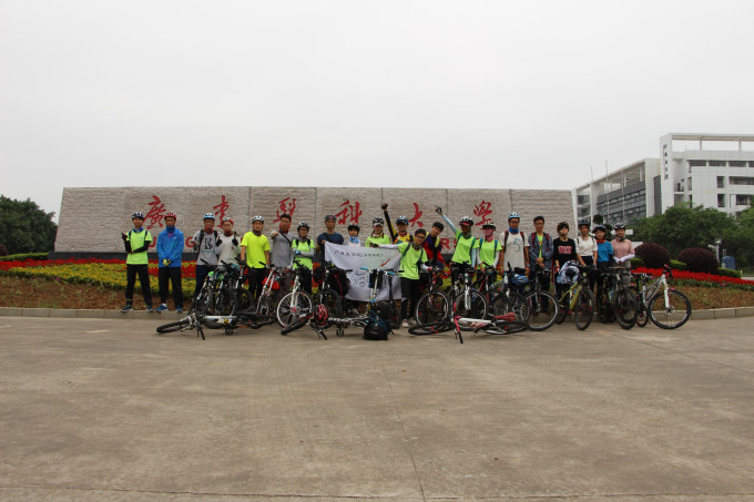 来来,大伙,我们马上出发了,到学校正门来一照正常照吧。