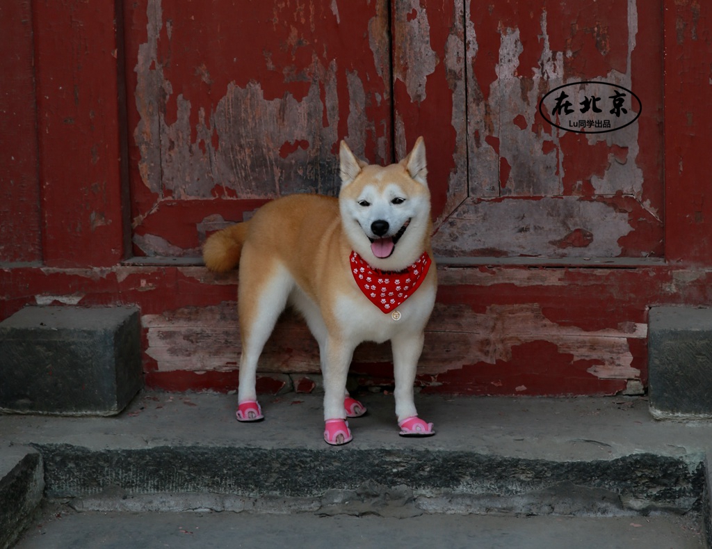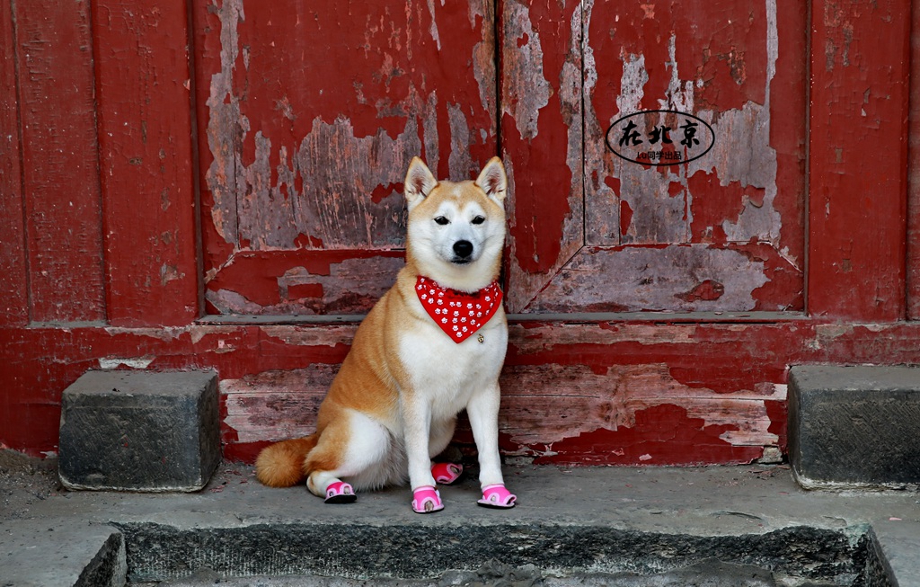 走到胡同口,遇到给狗狗拍写真的一对主人。