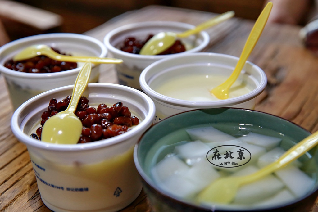 红豆双皮奶。老北京酸奶。杏仁豆腐。