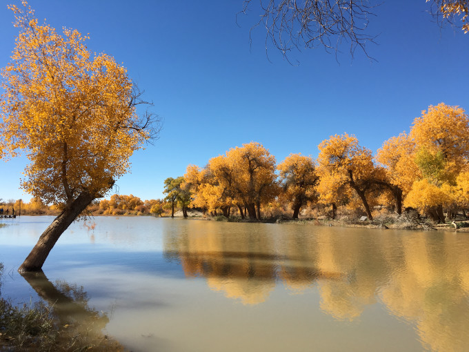 二道桥: 灵秀飘逸,胡杨中有水,水中有胡杨,交相辉映