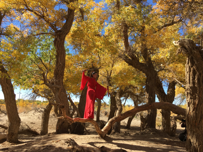 第一篇:看胡杨尽染 胡杨,虽然有着千年的生命,但每年却只有15天的绚烂,而我们可能一生中就只有这两天与你相遇,初见即可能是一生。都说看了胡杨,天下无树。 而我,见到胡杨这一刻,除惊喜、惊艳,就只想得到这一句:“如果有来生,要做一棵树,站成永恒,没有悲欢的姿势,一半在风里飞扬,一半在土里安详,一半沐浴阳光,一半洒落阴凉,如此卑微如此骄傲,从不依靠从不寻找”。