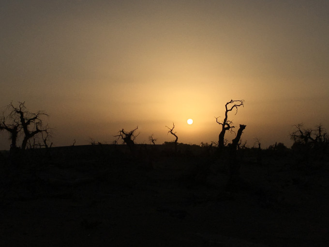 怪树林日落:岁月长河,历经了多少变迁; 风沙漫天,掩埋了多少故事;历经沧桑的你,见证了多少悲欢离合,而屹立千年不倒,又是在盼望着谁、等待着谁?