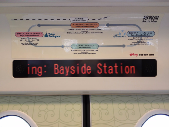 迪士尼海洋在区间车的最后一个站!请务必看好了,别下错车站。第一站是disneyland,第二站是hotel,第三站才是disneysea哦