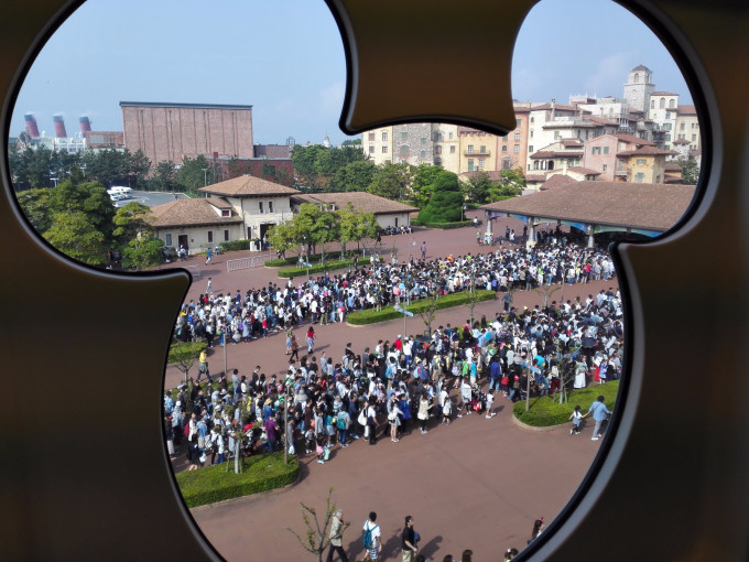 830入园以后,我们看见美国海滨已经挤满了人,在长100来米宽二三十米的通道上至少容纳了200人,并且有工作人员举着牌子说FP已经领完,当时我们就懵了,难道惊魂古塔那么受欢迎?瞬间领完?当时的内心也是崩溃的。但是最后当我门玩完了整个园区返回到美国海滨才发现,我们看错了,被领完的并不是惊魂古塔,估计是玩具总动员吧!而其实玩具总动员并不在我们的计划之中!