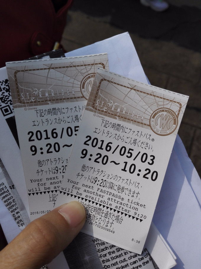关于门票。其实在国内有大把大把的代理商,你上淘宝天猫一搜都一大把。而从今年4月开始全球的迪士尼都同步涨价了,然……因为刚过五月嘛,所以很多代理商的手里都有剩余的旧票。我们在淘宝买的价格是353元(现价大概415),在入园前2日出票,电子票(含二维码)会发到我们的邮箱,我们是通过酒店前台打印出来的(一定要打印)。打印出来后在入园时,便可以直接扫A4纸上的二维码进入了,无需再兑换正式门票,从而节省了购票换票的时间。