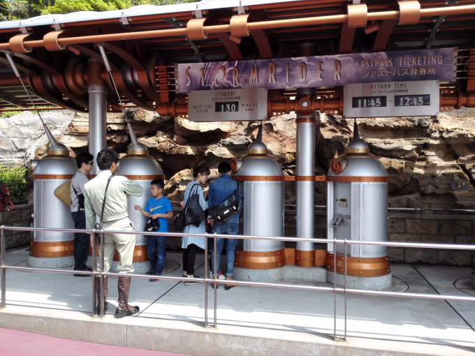 那么事已至此,不要犹豫!果断的,我们暴走去了发现港,先拿风暴骑士的FP,当时若要排队需排140分钟(每个项目门口都会有指示告诉你排队时间,这个排队时间减去10分钟大概就是真实的排队时间了),拿到的时候是8:45,显示9:20-10:20可以玩风暴骑士,并从9:20起拿第二次FP。
