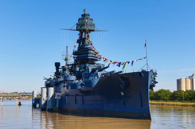圣哈辛托战场海湾边上德克萨斯战舰博物馆,德克萨斯战舰是少有的参加了一战和二战的战舰之一。