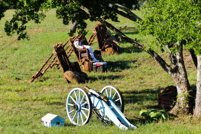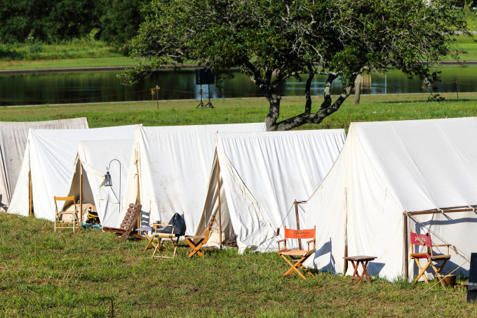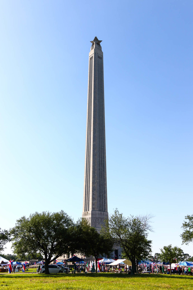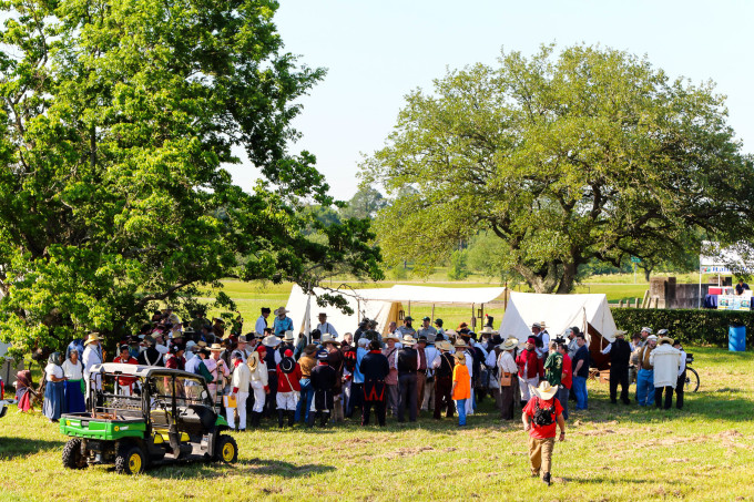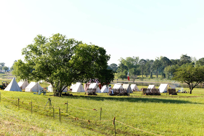 清晨一路往东去这次旅途重点之一新奥尔良,首站圣哈辛托战场国家历史公园(San Jacinto Battleground State Historic Site 29°44'56.77" N 95°04'52.86" W, 免费)。休斯顿将军指挥的德克萨斯军在这里一举打败墨西哥军队,而赢得了德克萨斯的独立。这一路有点幸运,我们又正好赶上圣哈辛托战争重演,一万多人观看。这是德克萨斯军的营地:
