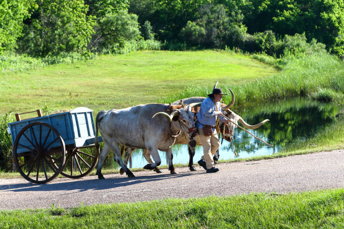 谁赶谁呀?这两长角牛(Long Horned Oxen)赶着驭手往前冲,迫不及待去参加圣哈辛托战争: