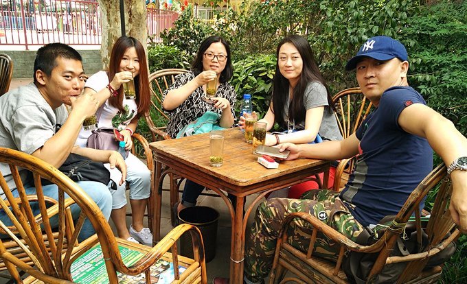 逛累了,歇歇脚,人民公园砌杯茶,周边四处麻将声。