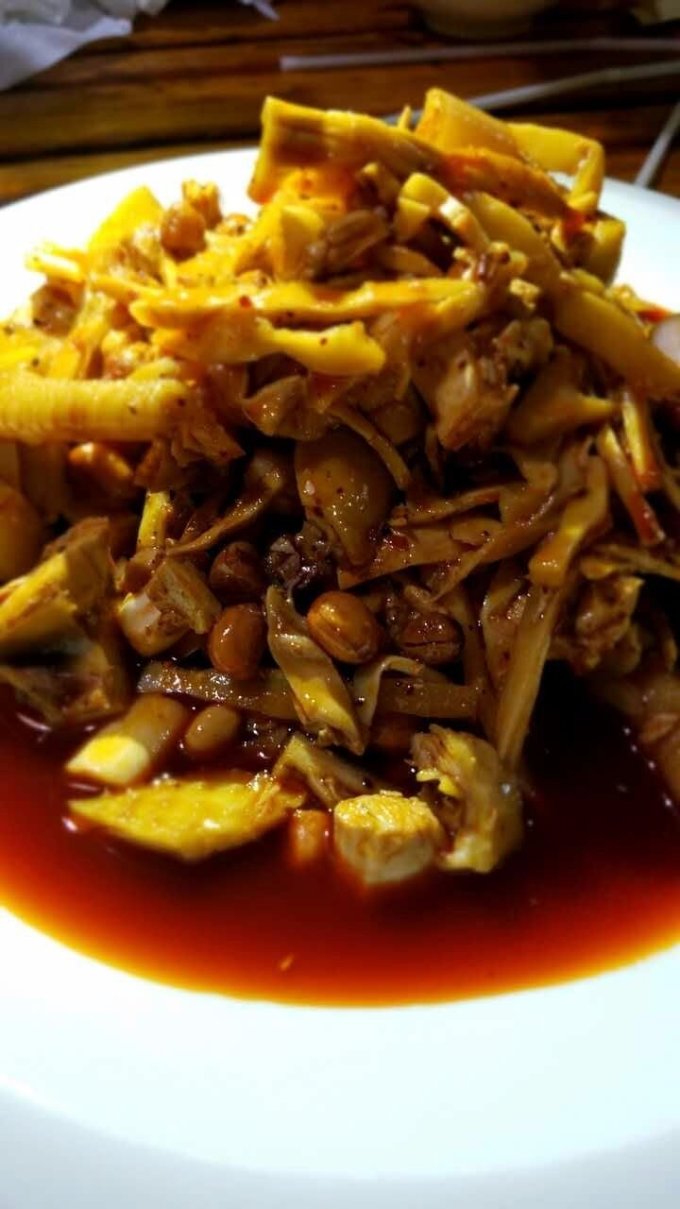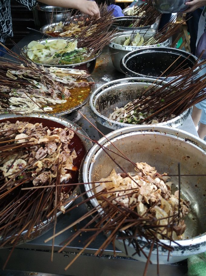歇够了,起身杀奔先鲜知味钵钵鸡。果然是不辣且香。还有鸡汤米饭,糖水凉糕,好吃到爆。最关键的是你知道我们一行人吃了多少钱吗?100元!!!
