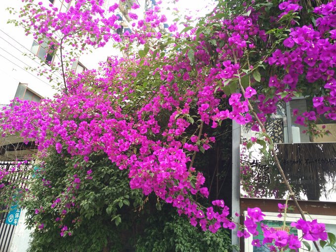 宽窄巷子像极了北京的南锣鼓巷。每逢佳节人满为患。像逃荒一般匆匆而过,拐进小通巷却发现冷冷清清,安静异常。拍一株街角的三角梅聊以纪念曾经来过这里,继续寻找下一站风景和下一处美食。