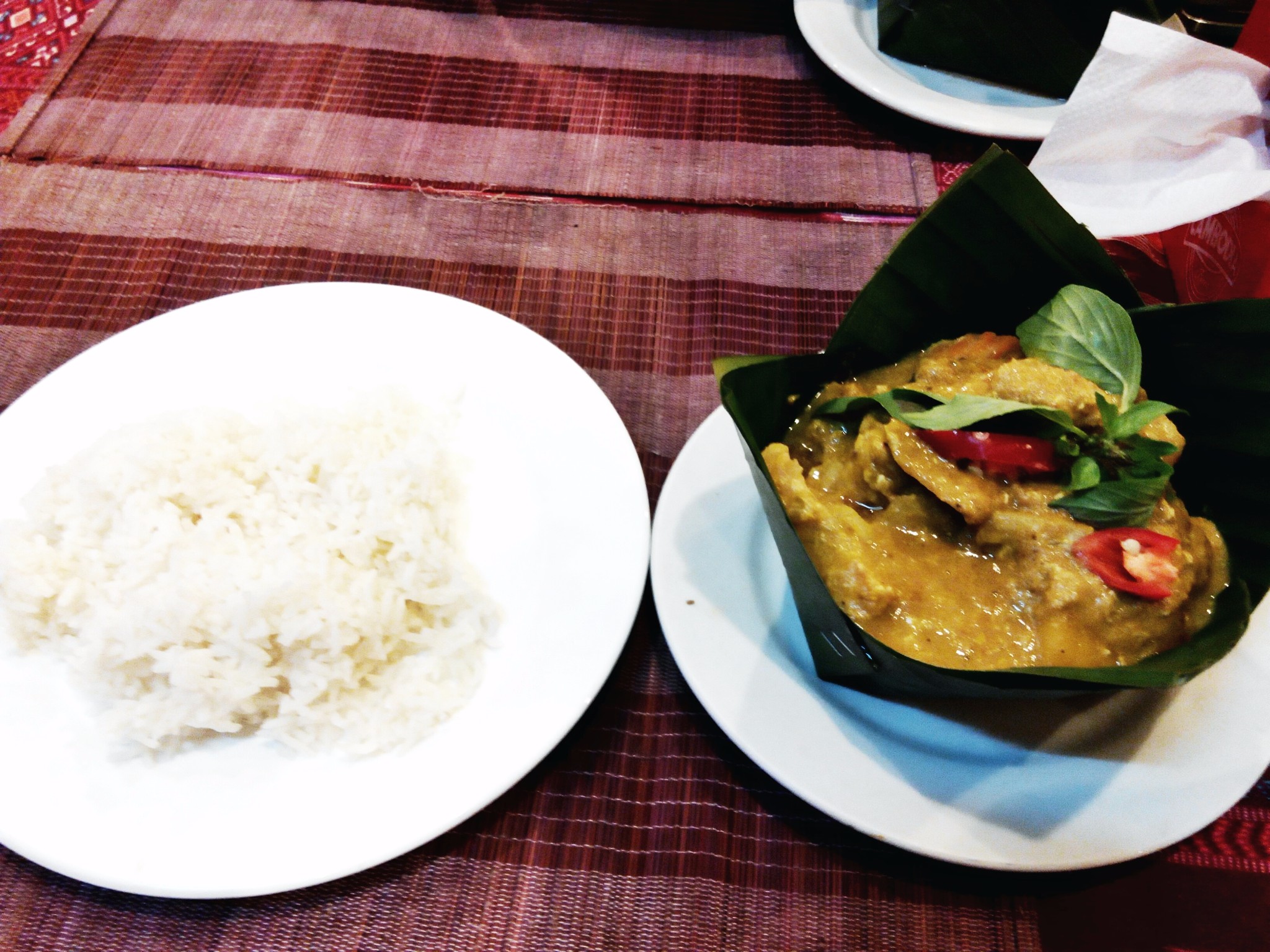 有名的主食叫Amok,米饭包在荷叶里,配上煎鱼,当初冲着攻略上的推荐而去,然而其实并没有什么好吃。
