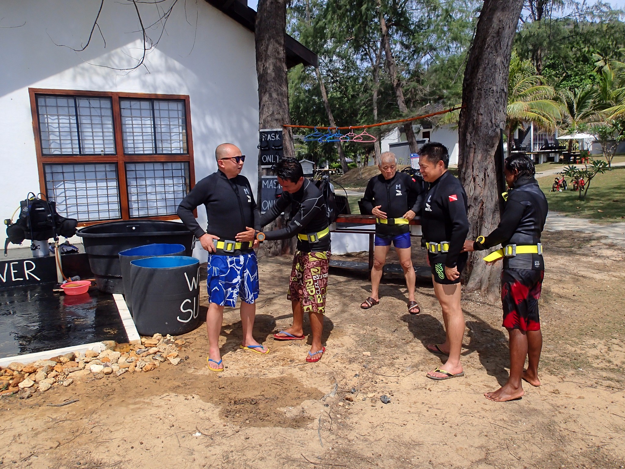 岛上也有丰富的娱乐项目,如滑水、风帆、海钓、弹跳床、射箭等。游客也可循林间小径徒步探幽,去观赏那原始的沼泽红树林,或去奎笼(Kelong)鱼参观。去找散落在小岛上的小动物。