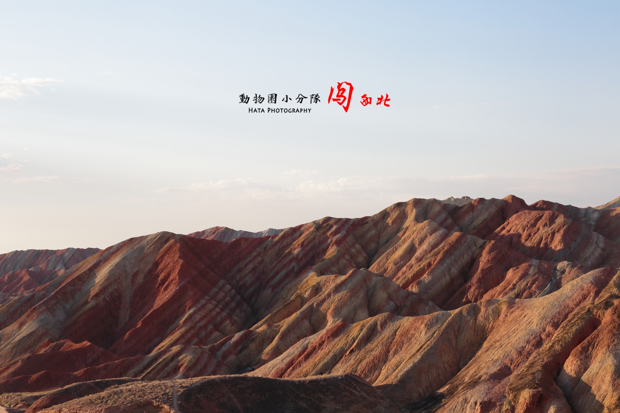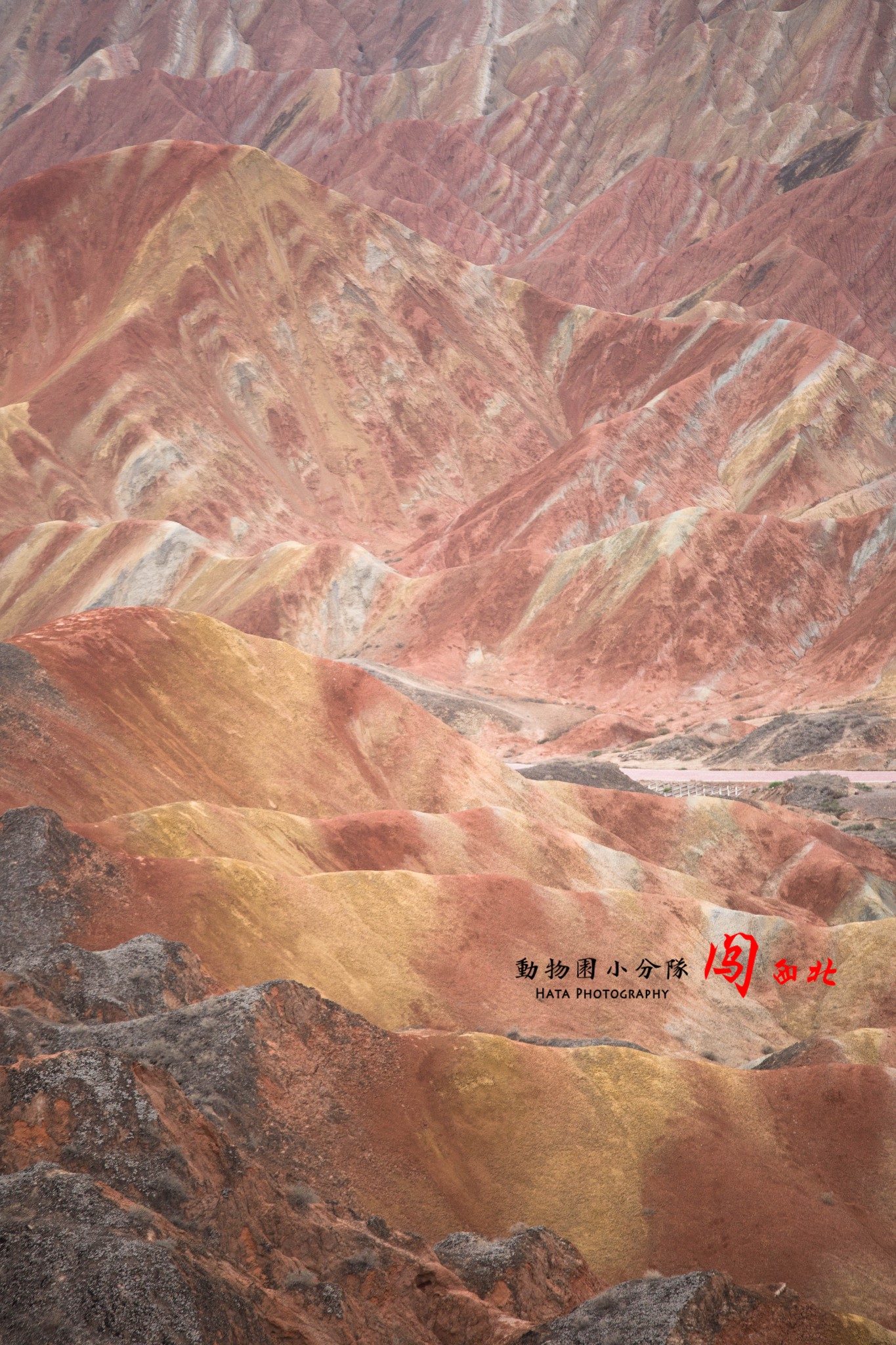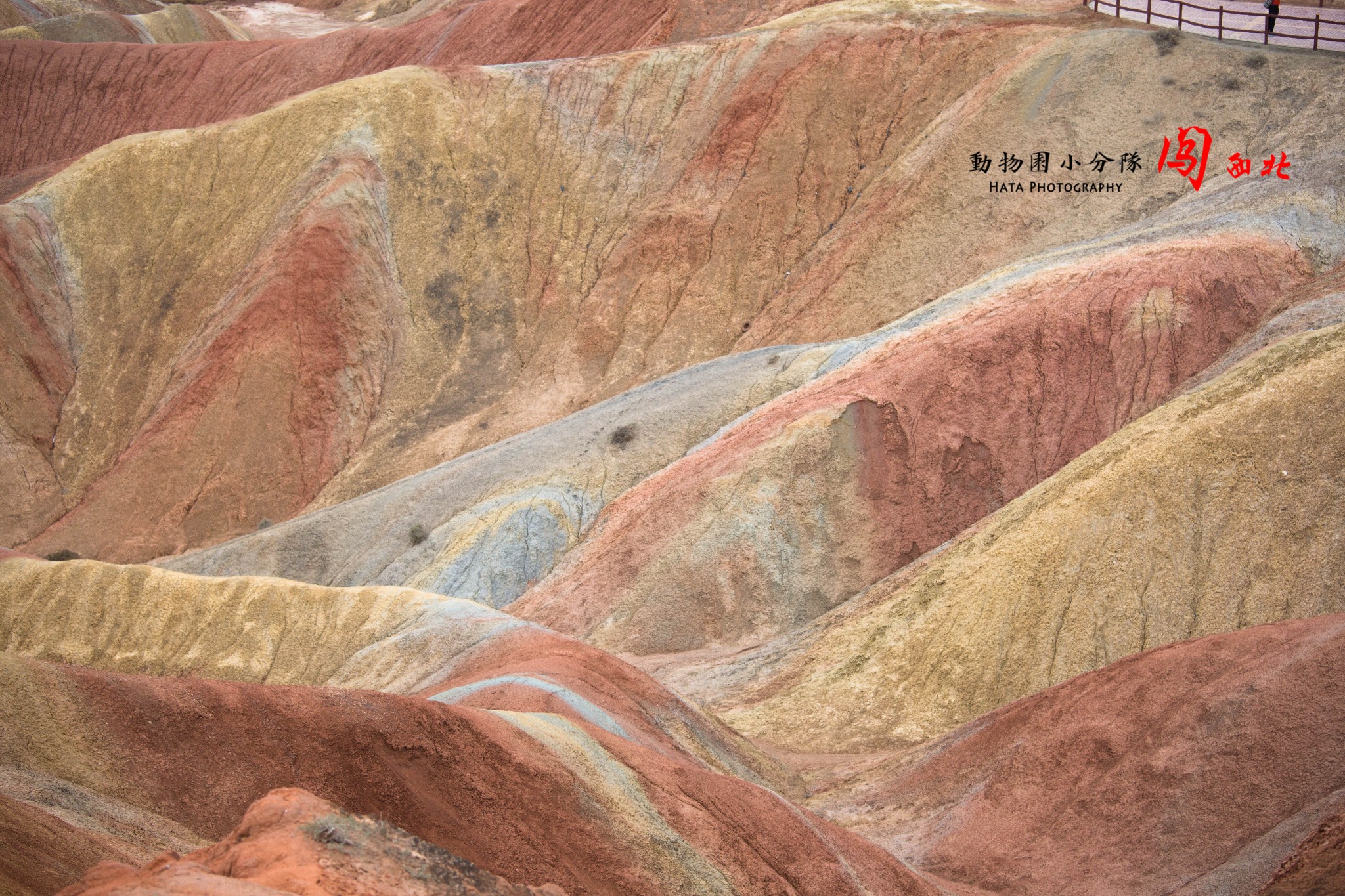 沙尘暴伴着小雨袭来,泥浆般的雨滴打在身上,各种泥印。本来已经打算要放弃,但是难得来这一次,确实心有不甘,所以还是硬着头皮等下去。结果,一个小时候后,沙尘暴过去了!天气虽然还是阴阴沉沉,但是丹霞的景色也算是漏出真容。