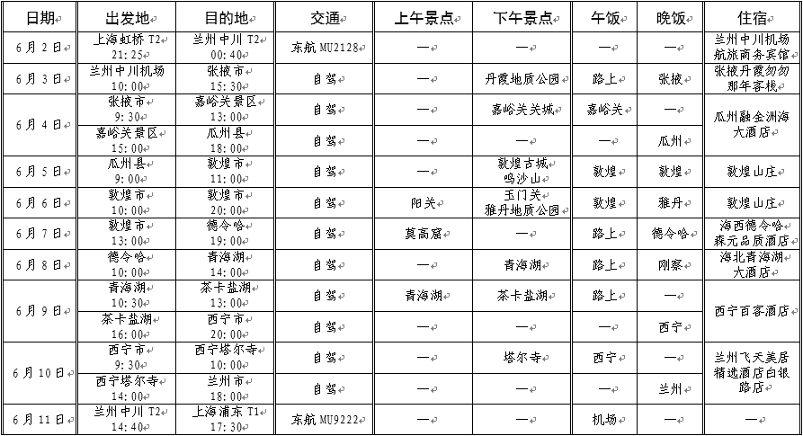 表格中是这次旅行的所有行程,时间上略有出入,但是有90%的准确度。