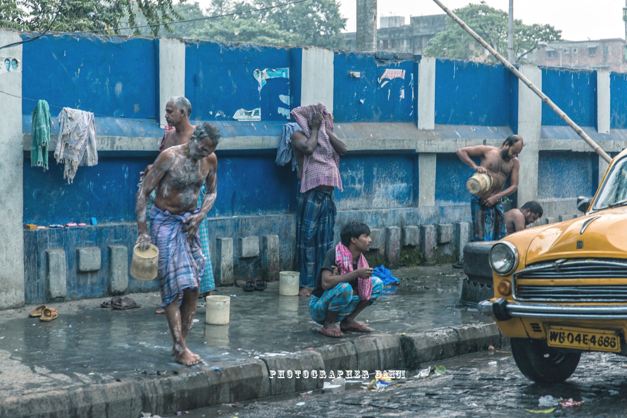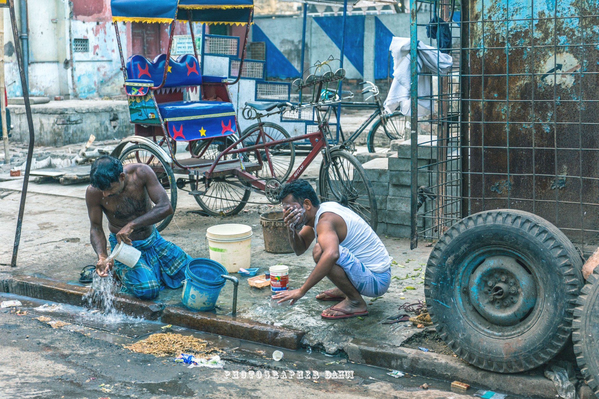 从sudder street走出来,向东北方向,步行大概20-30分钟可以抵达仁爱之家(或者10卢比约合人民币1元,可以乘坐人力三轮到达),早上的加尔各答人民刚刚起床,开始给我上了印度第一课,马路上的洗漱。