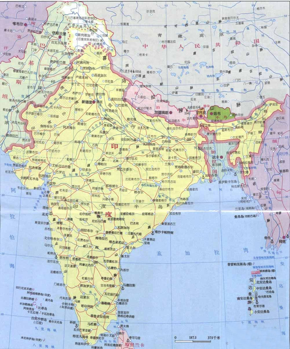 印度共和国,通称印度,南亚次大陆最大国家。东北部同天朝、尼泊尔接壤,孟加拉国夹在东北部国土之间,东部与缅甸为邻,东南部与斯里兰卡隔海相望,西北部与巴基斯坦交界。东临孟加拉湾,西濒阿拉伯海。国土面积298万平方公里,位列世界第八,人口13亿+,排名世界第二,一目了然,人口密度是远大于天朝的。