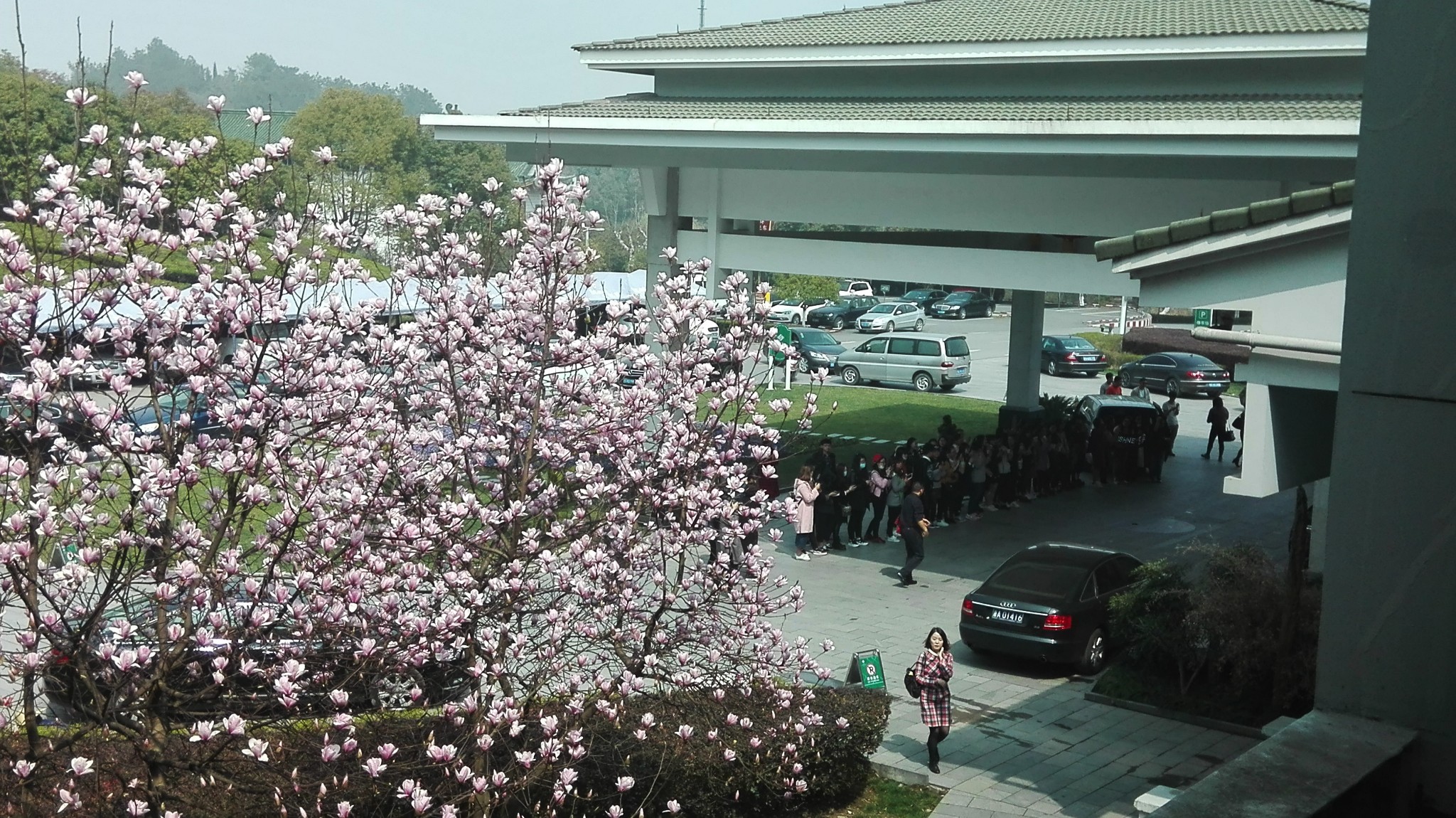酒店前面聚集了一群影迷,据说某个韩星入住这家酒店,每出来一个人,总是引起她们的尖叫,老以为是那个韩星出来了。问她们是哪个韩星,她们说了一句,也没记住。后来总算等到那个韩星出来了,还没看清楚,马上就钻进车里扬长而去,那群影迷还兴奋的不得了,开心的很,真的不能理解。