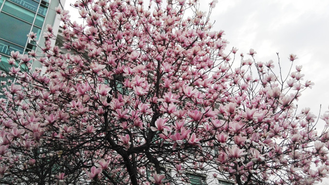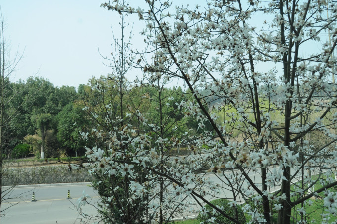 宾馆前的玉兰花开的灿烂。贵宾楼酒店是离景区特别是梦幻谷最近的酒店,条件也不错,价钱也不低。