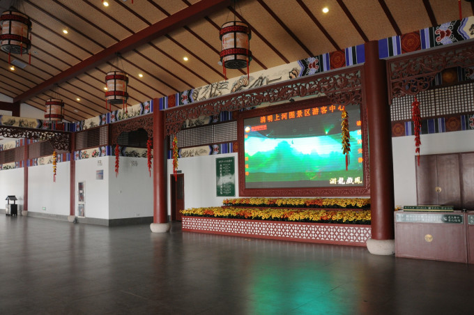 清明上河图景区是根据北宋著名画家张择端的巨作《清明上河图》和河南开封市的宋代建筑,结合北宋时期的社会背景、民俗、民风及宋时的古建特色,按影视拍摄的需要建造而成的 影视基地。 清明上河图景区占地面积600余亩,建有房屋120多幢,桥梁6座,码头9个,船只6艘,牌坊14座。景区分为外城和里城,城中有“汴河”蜿蜒,形成了城 外有城,河内有河的独特格局。