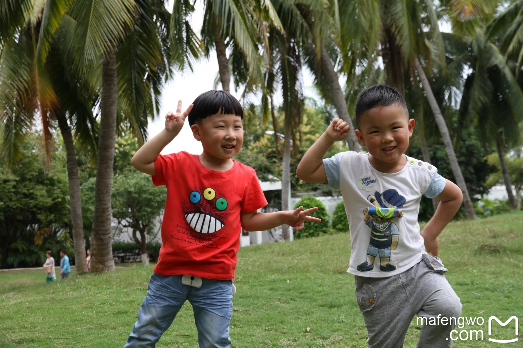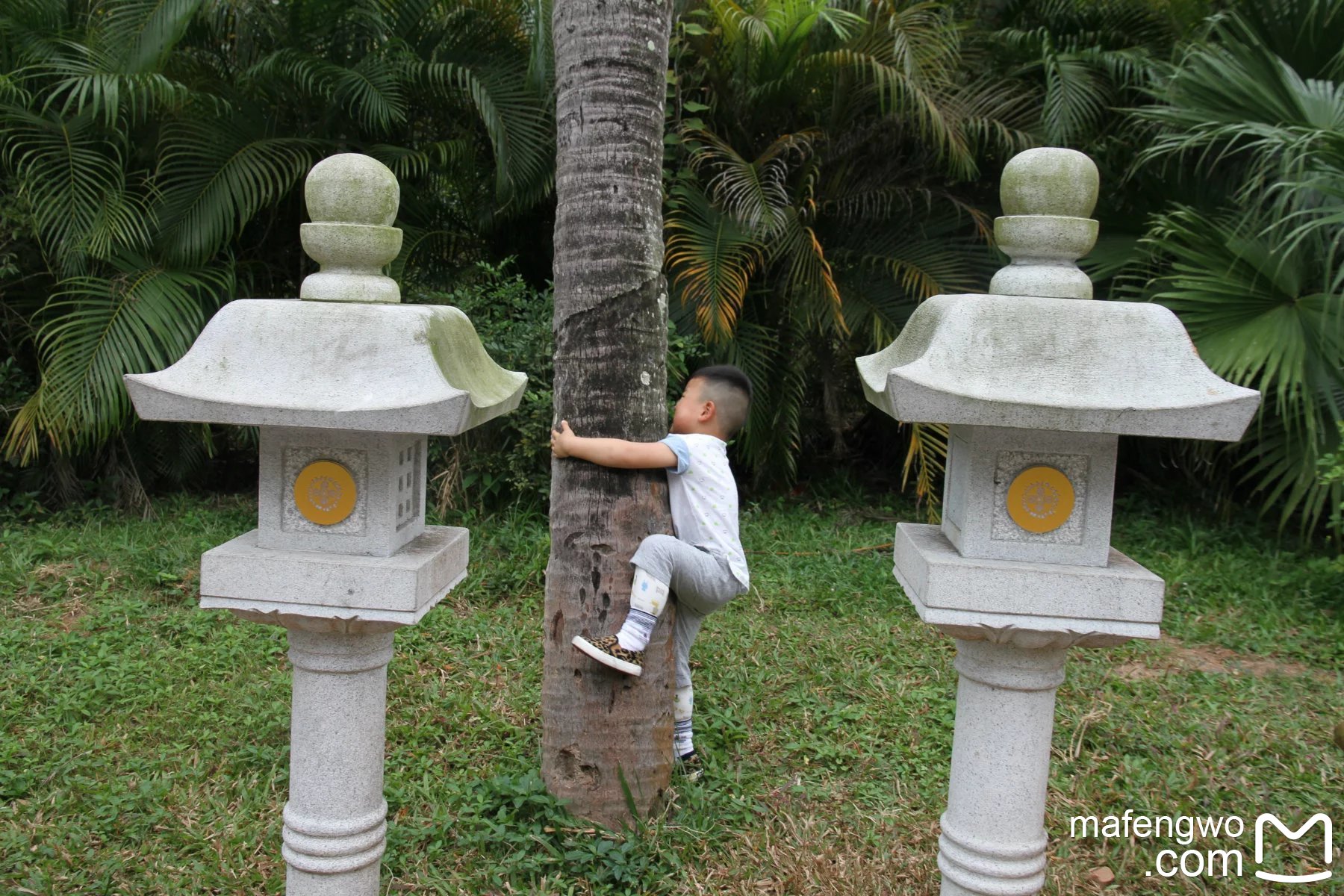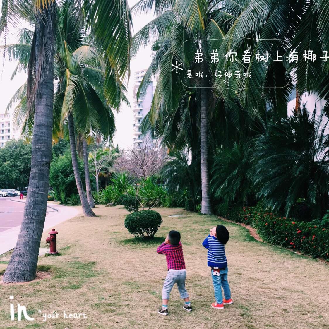 见到这么高、这么大的椰子树,小朋友很是激动