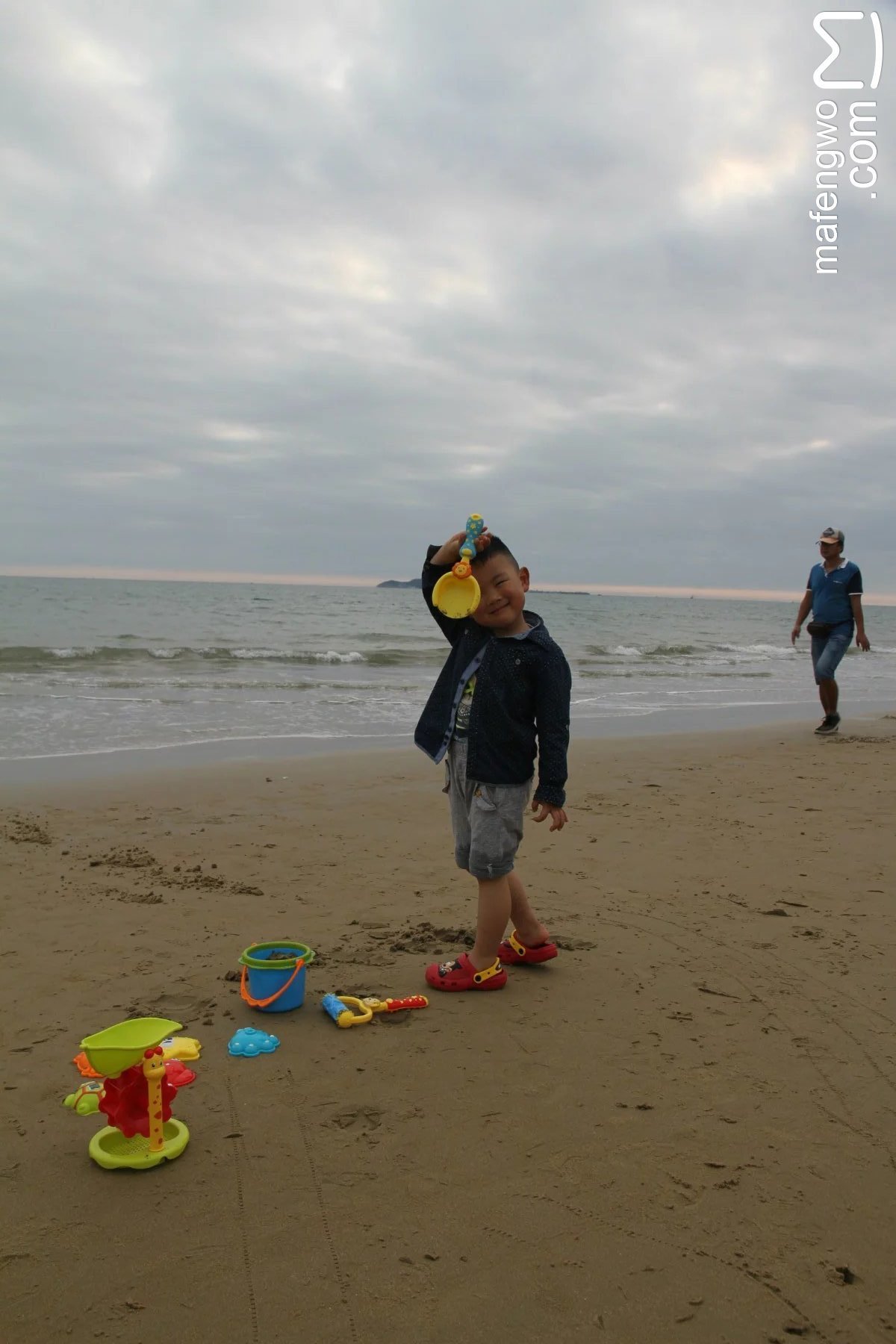 今天的精力比较充沛,下午2点多,游完南海观音,又去旺豪超市买了柴米油盐酱醋茶,去第三市场买我们的海鲜大餐,哈哈哈。到了公寓,老人们负责烧饭弄菜,我们两个妈妈带着小孩,去门口的椰梦长廊玩沙去。三亚湾的水质一般,然而并不影响小朋友游玩的心情,小朋友总是对水有着莫名的热爱。hello,门口赶海玩沙子去。