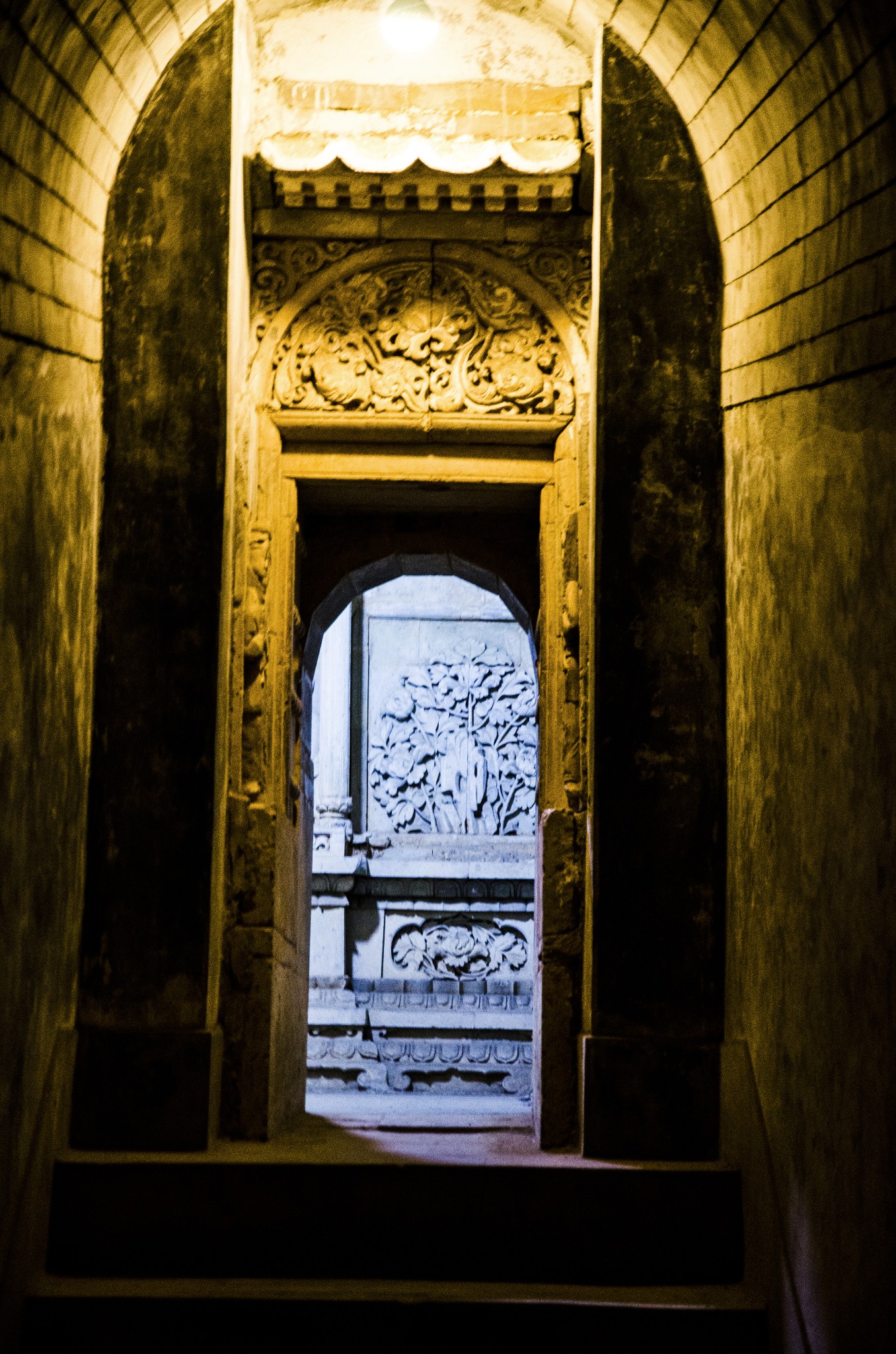 看门大爷领进墓道,开亮灯,就回去了,就剩我俩在迷宫一样的地下,胡乱走,边走边记道。