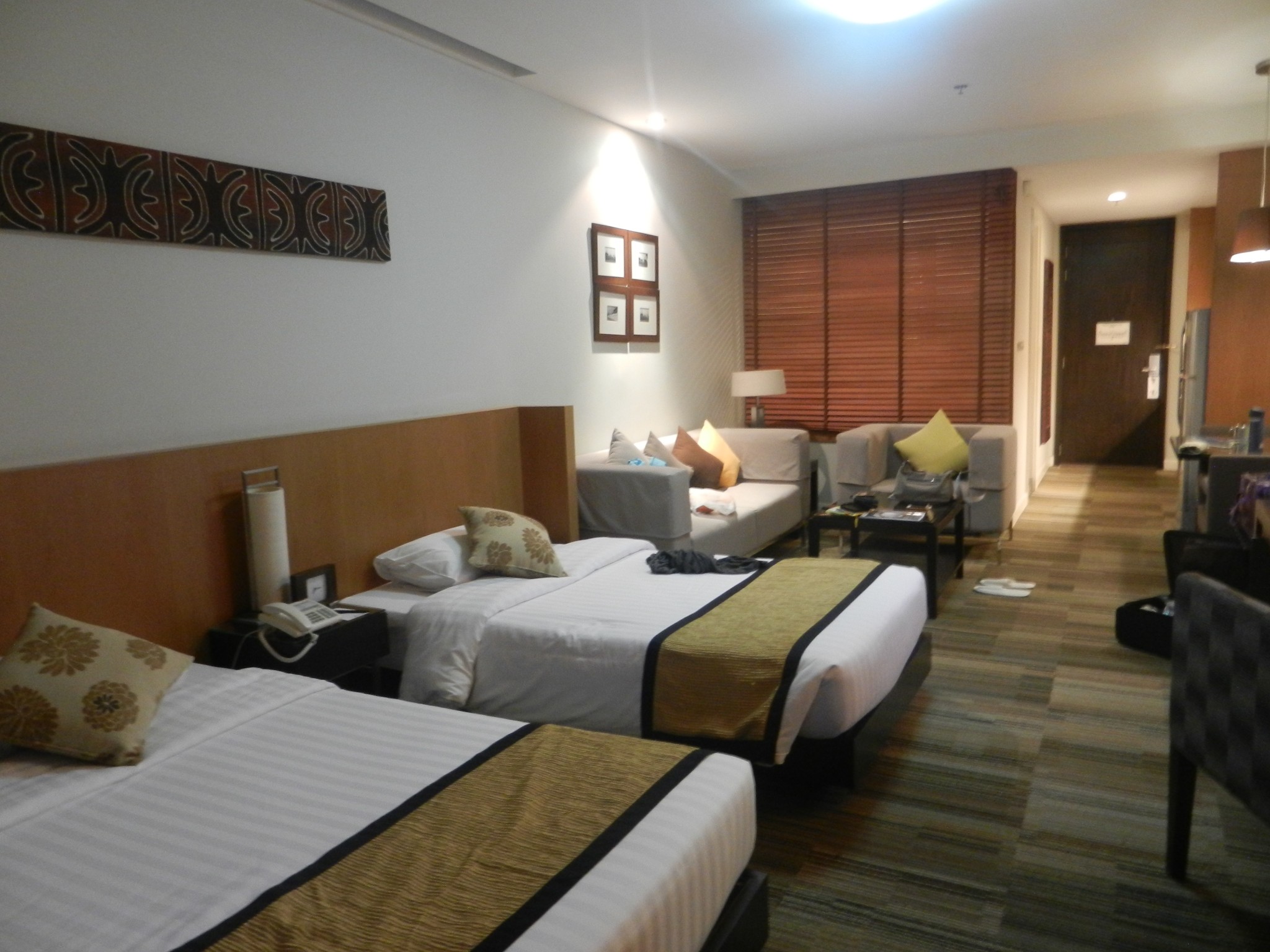 来之前已经知道泰国的酒店服务都非常好 到酒店后 有位专门的工作人员帮我们提行李 check-in 等待check-in 的时间里 耐心地给我们讲解了酒店的各项设施 包括娱乐设施、马杀鸡、餐厅等 逐一为我们介绍 而且还推介了酒店到尚泰购物中心的免费shuttle bus 让我们有需要可以到前台预约 另外 还有个细节特别让我感触 带我们进房间的时候 他是脱了鞋才进去了 而后还逐一调试电器 确保完好可以使用 最后发现wifi有问题时 第一时间联系前台 确保我们的设备都能上网的时候才离开 以前一直为国外的小费文化感到疑惑 直到现在才发现耐心、专业、热情的服务确实是应该得到额外鼓励的