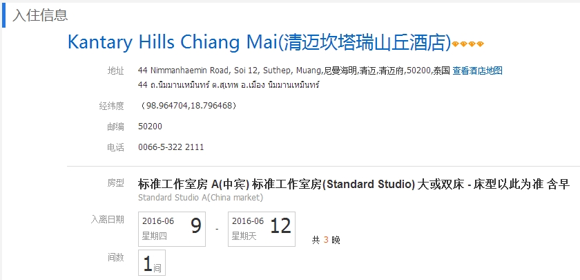 携程预订 1062RMB/三晚(含早)