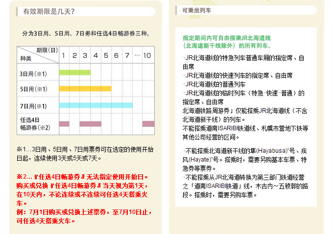 至于北海道周游PASS的价格、使用期限、范围官网都有明确的标示,附上下图,大家在购买前一定要看清楚,毕竟不便宜的。