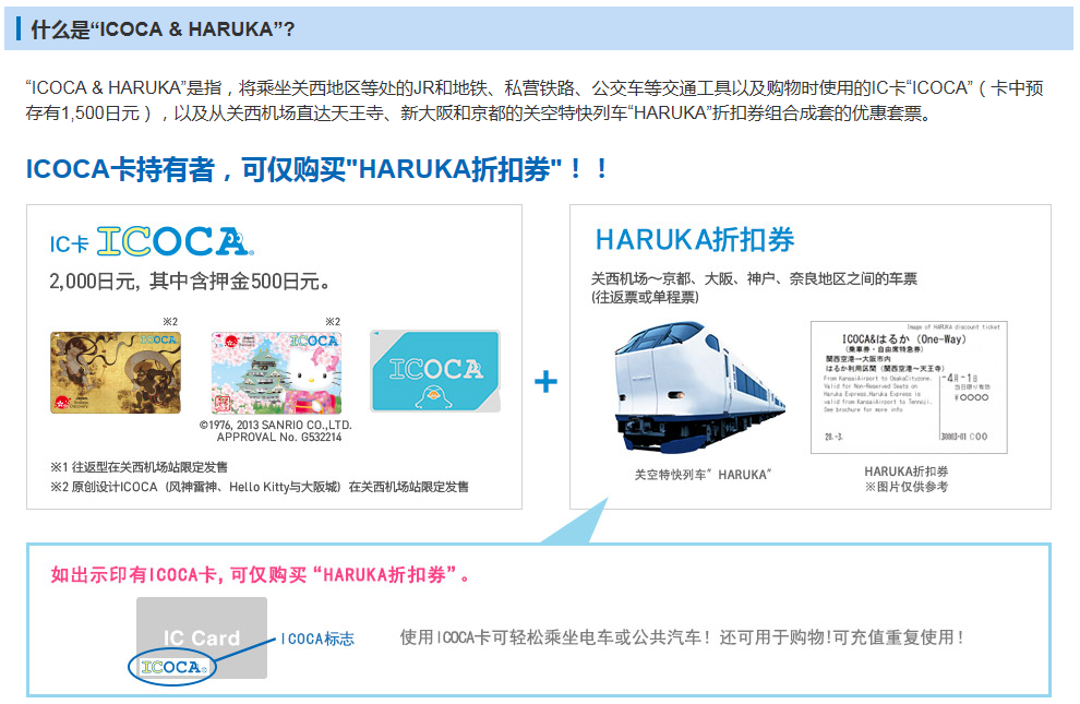 当时选择的是Kitty版面的ICOCA,由于觉得卡面可爱没舍得退卡的同志们,在下次赴日希望继续购买“折扣HARUKA”时,只需出示ICOCA就可以单独购买而不需要再购买套票了。