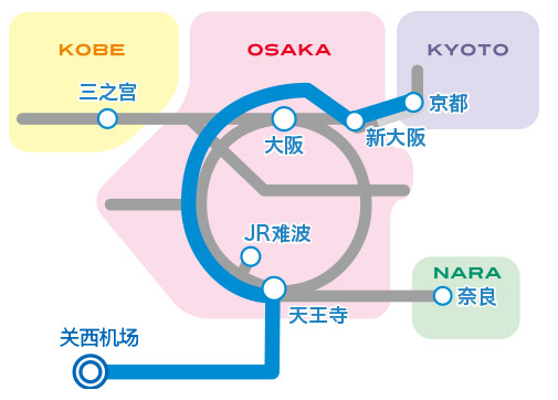 单程型(即从其他站前往关西机场):大阪、新大阪、天王寺、JR难波、京都、三之宮、奈良、关西机场