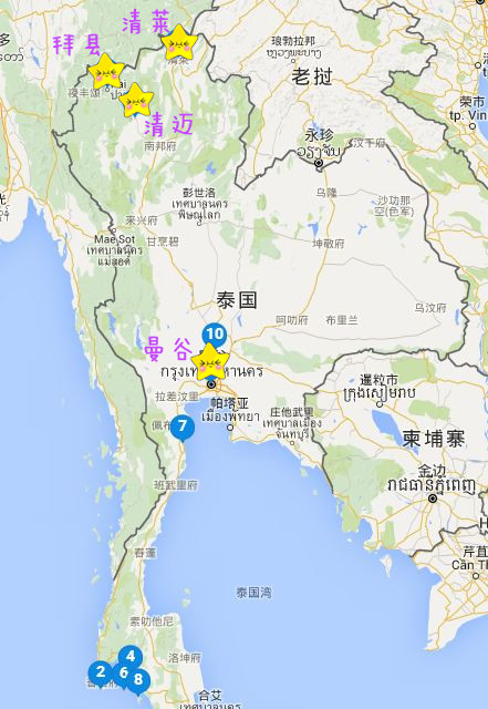 这次的行程主要集中在泰国北部,包括清迈、清莱、拜县和曼谷四个地方。
