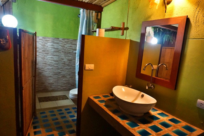 房间后面有一个大大的后院,淋浴房,厕所,保险箱,洗手台都在这里,还有茶几座椅。