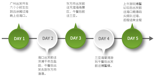 广州去海南自驾 算是蛮方便的一种方式,开车虽然累点,但是其他什么的都是最方便的,不受时间的约束,想走想停全凭我自由!5天环海南岛 自驾 ,时间上还是比较紧张的,要舍弃蛮多想玩的地方了,简单行程安排如下: