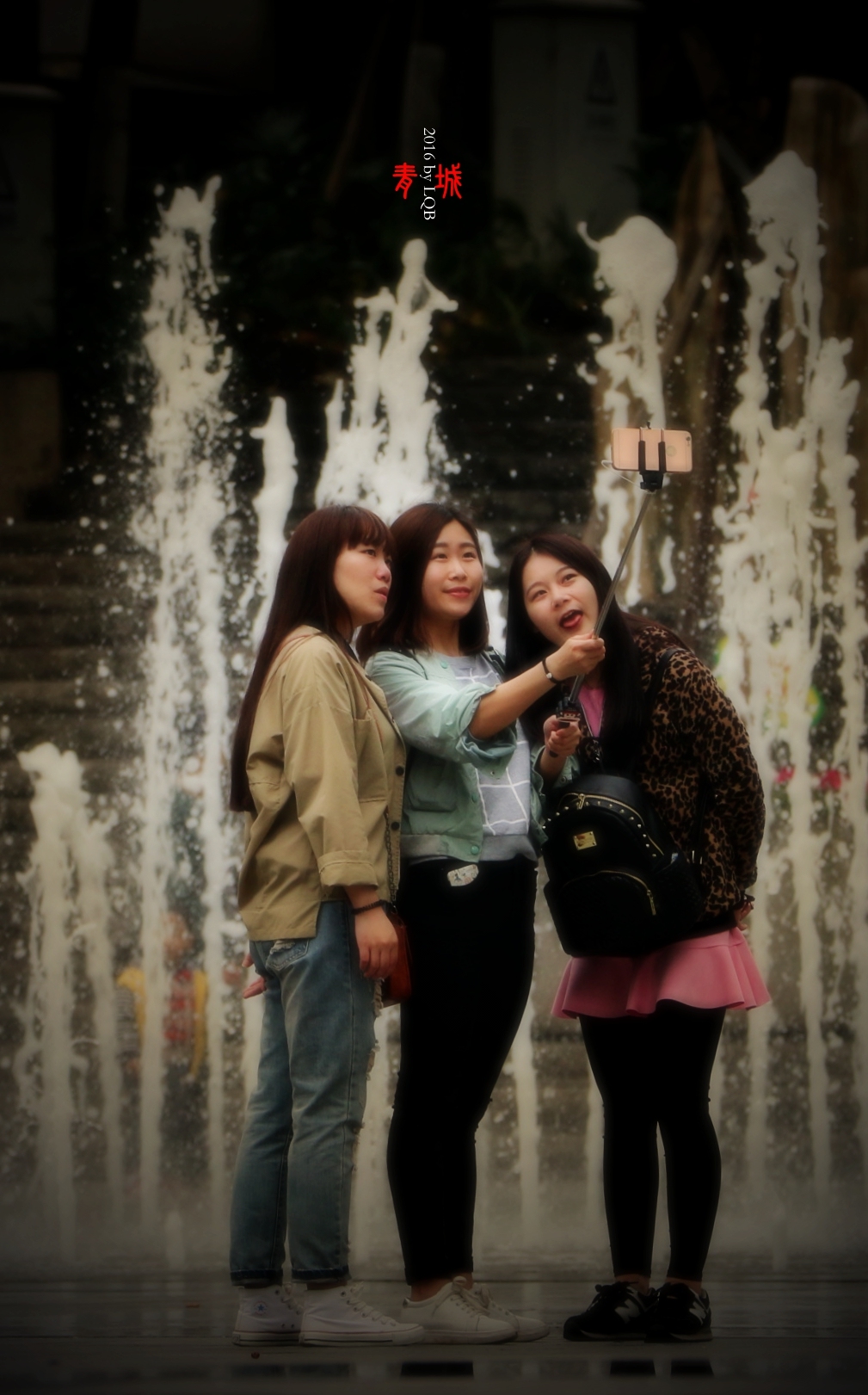 持单反坐广场一隅。雨后凉,摄姑娘。 打发时光。。。。