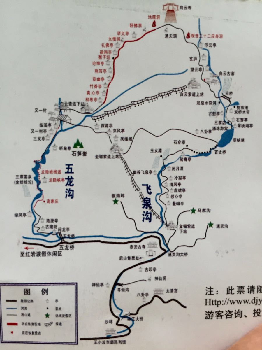 白云寺--通天洞--白云索道下站--又一村--龙隐栈道--五龙桥--泰安古寺。