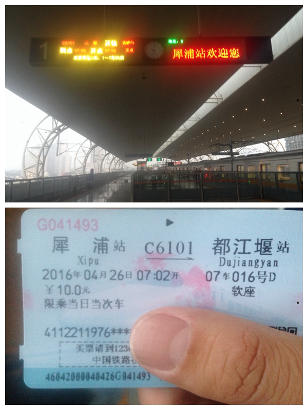 26日晨,差不多是最早一班的城际高铁,从犀浦到青城山。没有坐到终点,而是都江堰站下车。票价,只有十元。