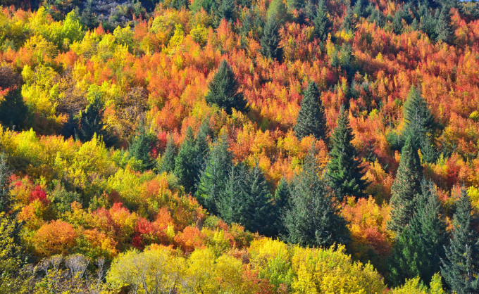 箭镇的山上争奇斗艳的,仿佛用尽了黄色、红色和绿色~~