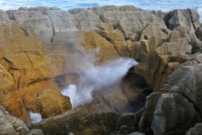 薄饼岩的水洞,冲出的海浪仿佛展翅的雄鹰~~