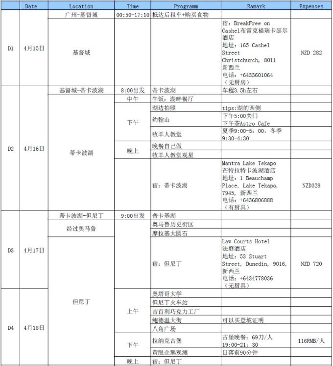 Tip2:四月份的新西兰虽然是秋天,但是白天气温还是ok的,穿两件衣服即可,可以带上压缩羽绒服,晚上加在外面刚刚好。
