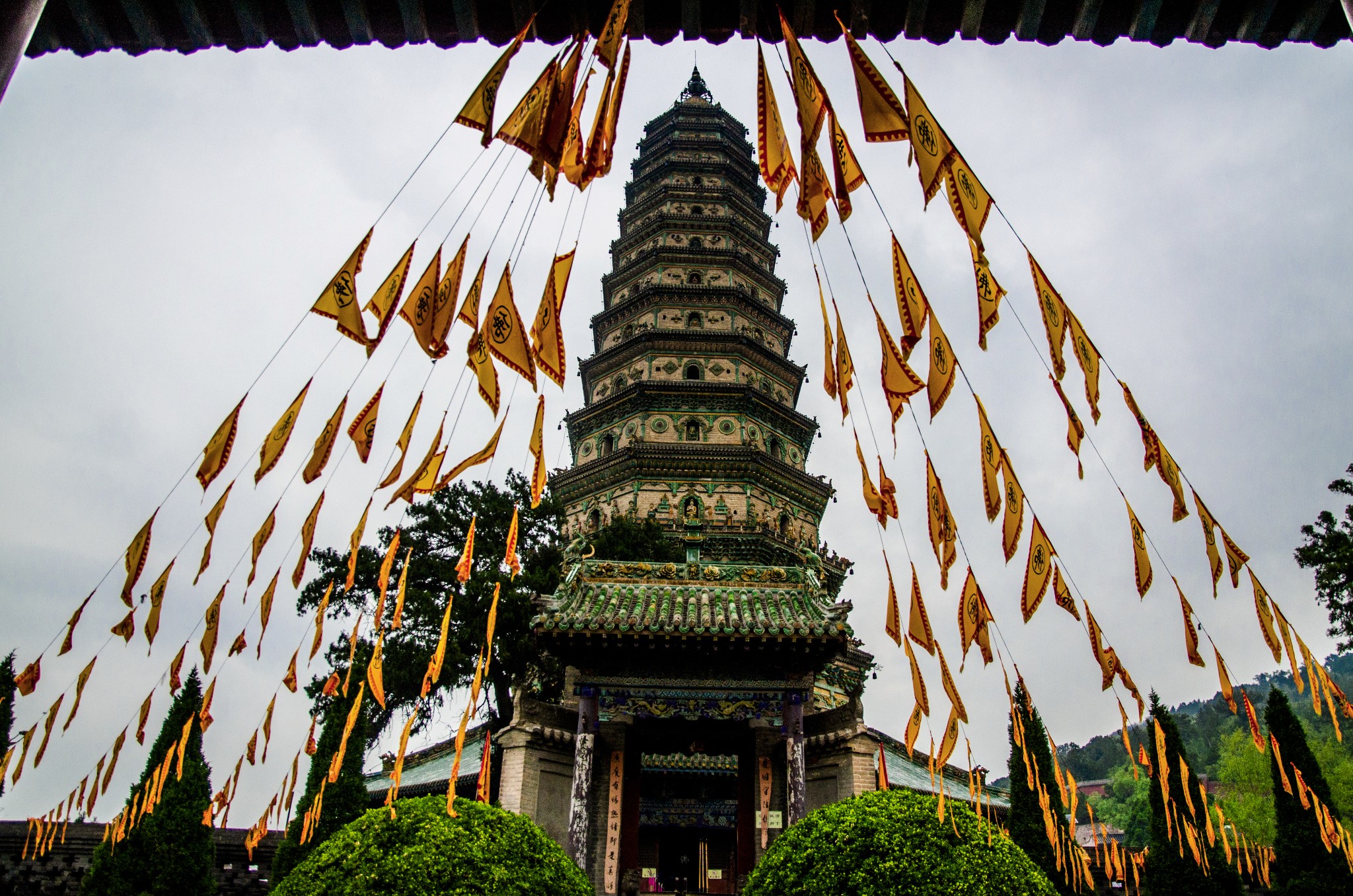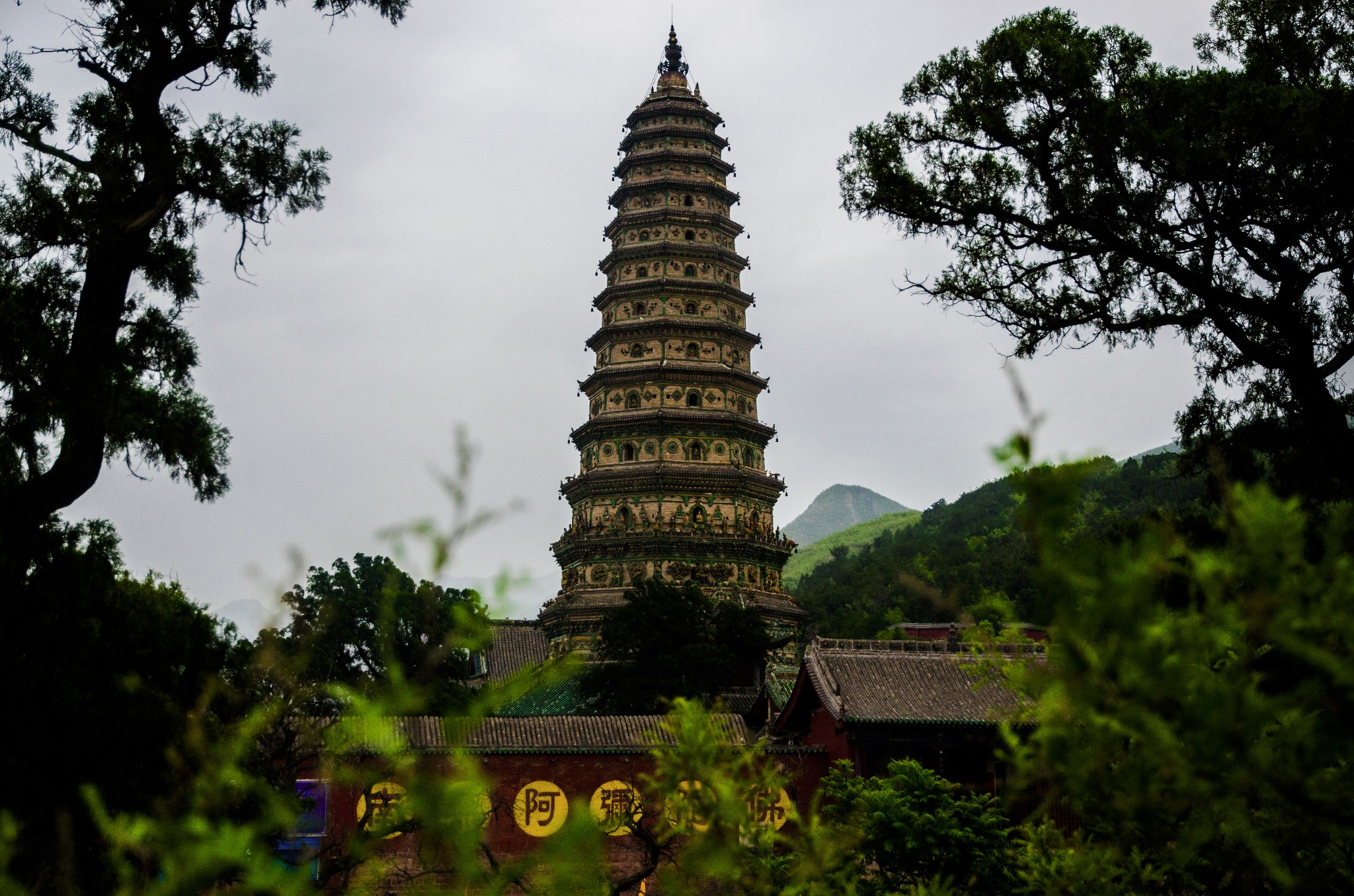 飞虹塔正对垂花门后,建在寺院的中轴线上。