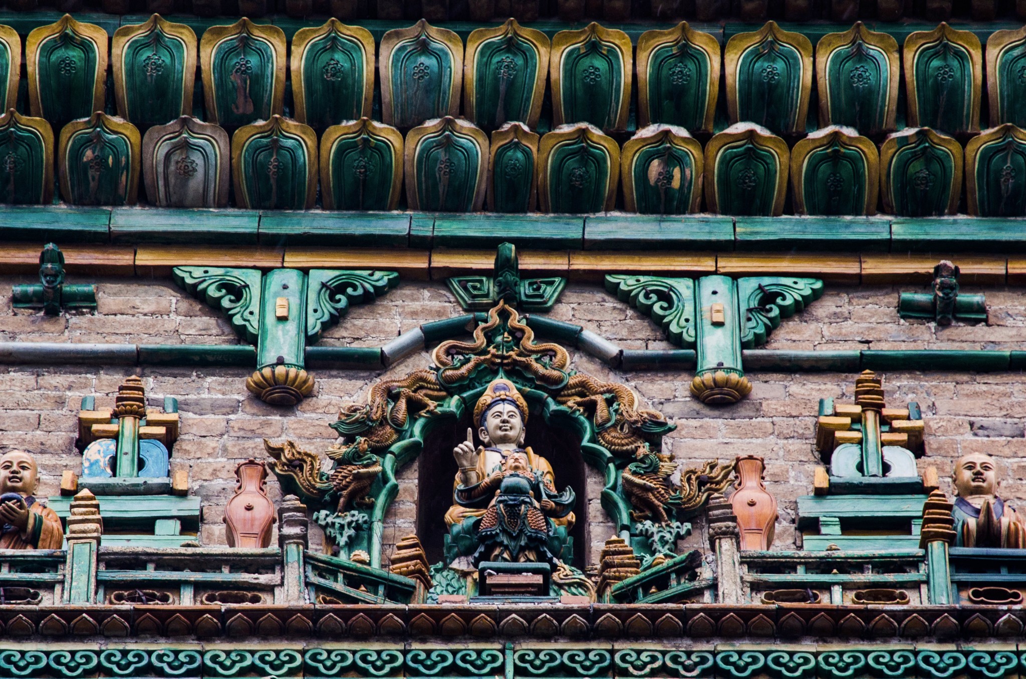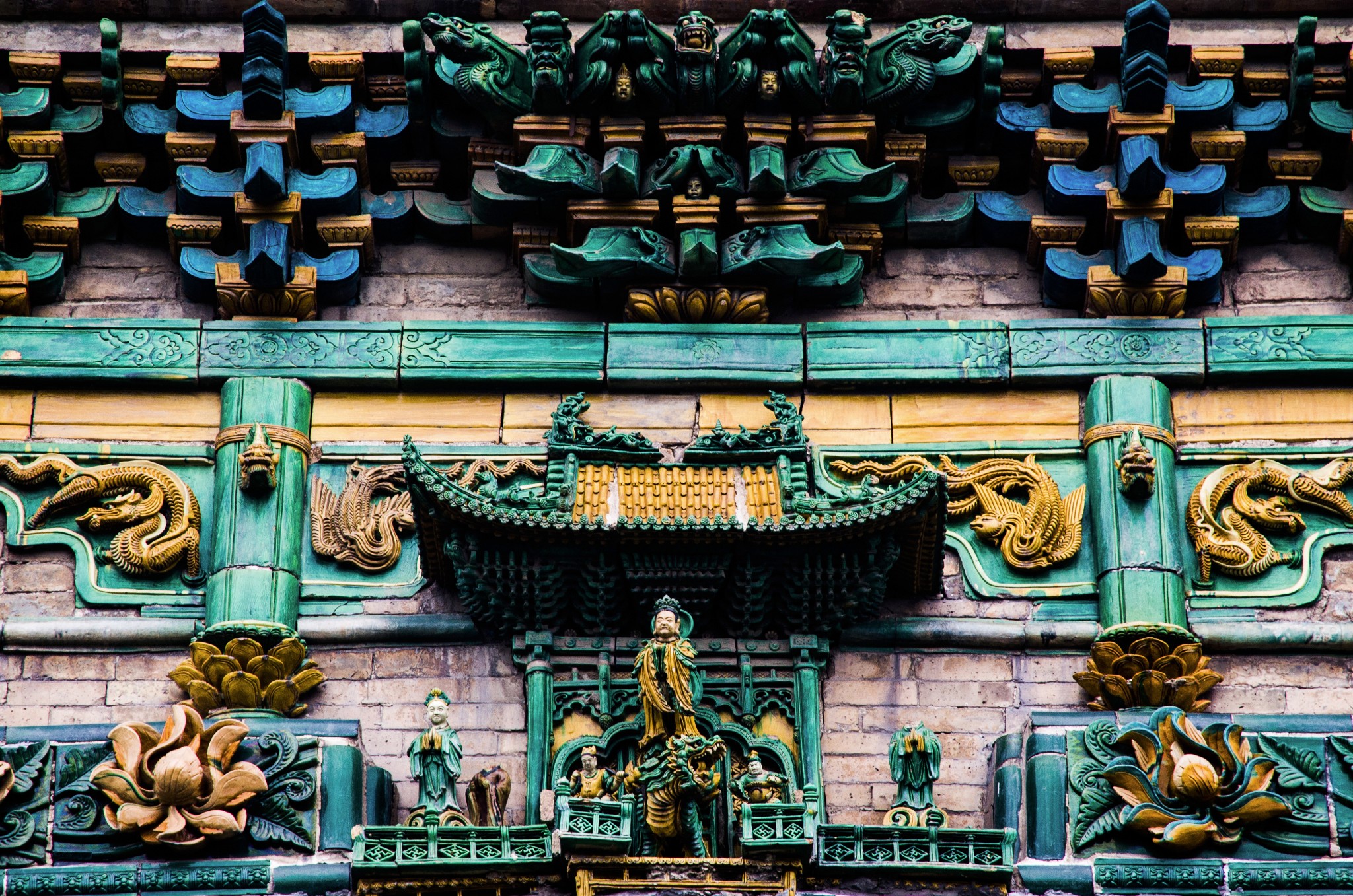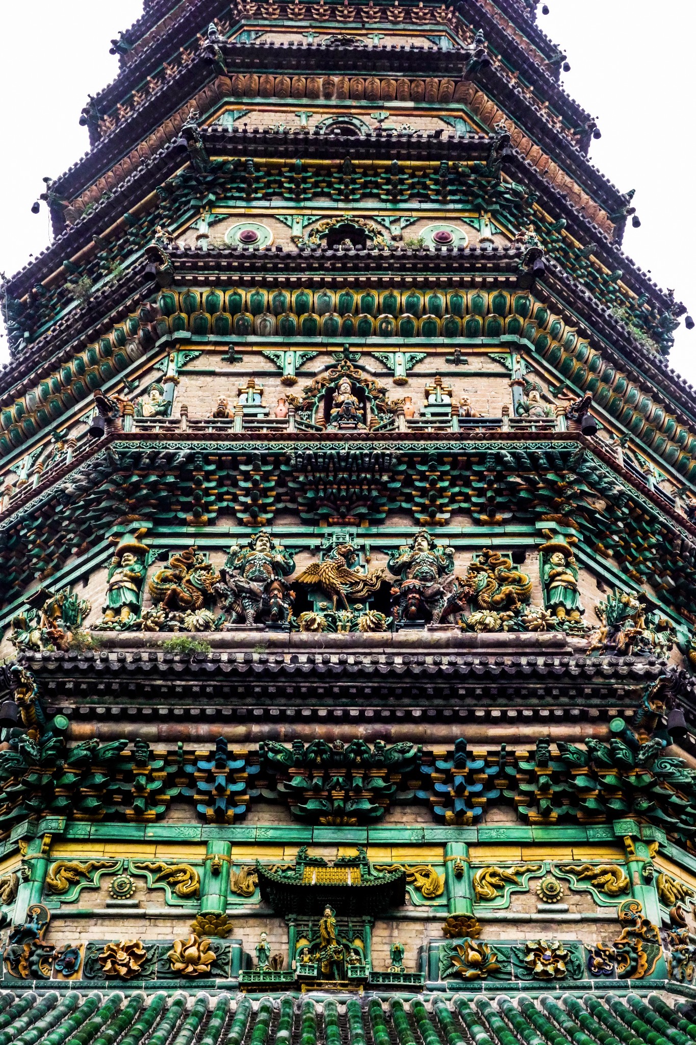塔表逐层饰以精美琉璃,造像为佛、罗汉、金刚以及花鸟走兽。