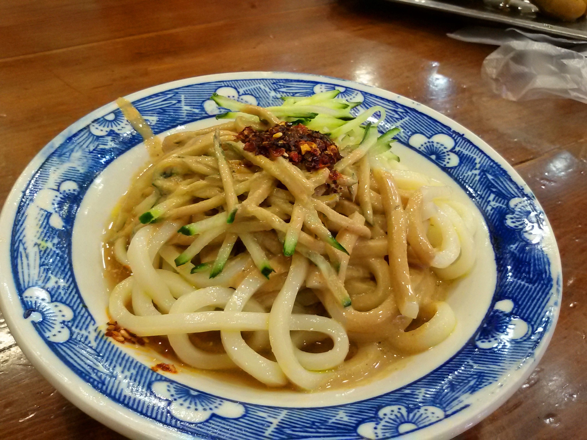 在众多游记里面反复出现的回民街个人看来并没有传说中的那么出色,到处都是老孙家/老米家等老字号根本无法分辨,所幸就走到哪吃到哪。说到陕西特色美食第一个想到的就是凉皮。陕西凉皮有麻酱凉皮/秘制凉皮根据材料还分成面皮和米皮。中午在回民街吃的是麻将凉皮,6元1份,味道怎么形容呢,比较像麻酱面条