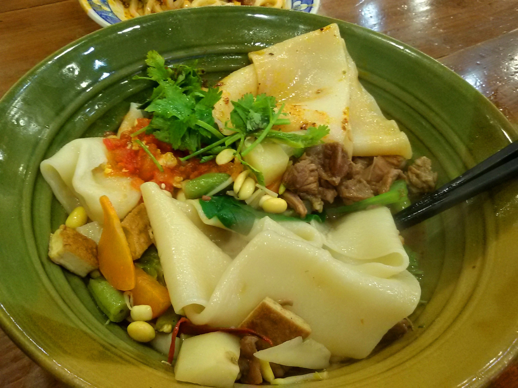 照片里那碗宽宽的面条也是当地的美食叫裤带面。味道嘛只能说喜欢吃酸的人会比较喜欢,而且分为普通和优质2种。这碗就是传说的优质版,真心不觉得有什么区别,而且一定要看好店家菜单上的价格明细。我吃的这家就没写价格,我清晰地听到我后面的人和我点的一样的东西,却出来2个价格,所以出门一定要多长个心眼。。。