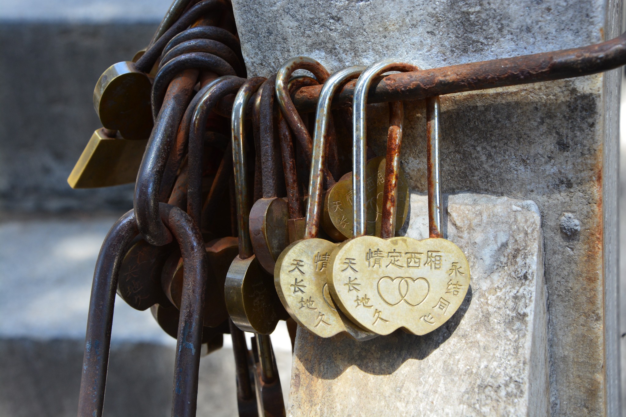 另外,我还看见普救寺许多地方都拴着“永结同心”的小铜锁,这是前来旅游的情侣们为了表明心迹而留下的凭证,不过他们似乎搞错了一件事情,不是所有爱情故事都有白头到老的结局,而大多数约炮都不可能约出最后的美好姻缘,就如《西厢记》一般,张生最后就是吃干抹净,一走了之,只留下莺莺小姐枯守空窗,凄凄惨惨戚戚,好不悲凉。