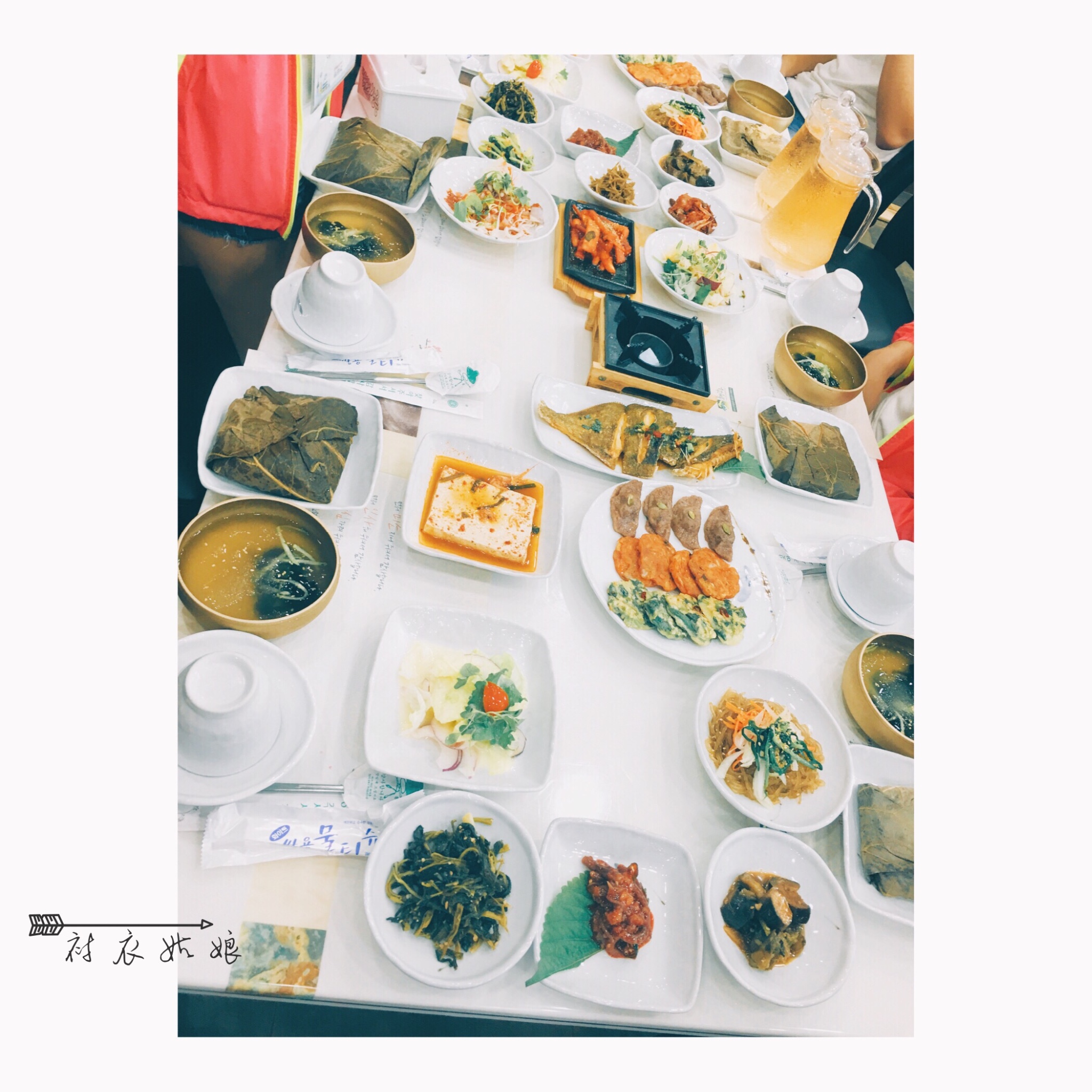 有烤肉 荷叶包饭还有 各种小菜组成的韩定食 真的超级超级超级好吃 重要的词重复三遍!!!!